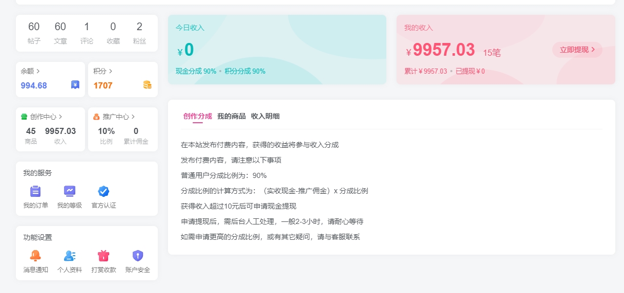 4. 售卖自己的知识和技术价值,这个也都是为了激励更多了技术流,知识流在论坛的价值所在,世界上没有白嫖的知识,有付出就有收益。当然也不是可以售卖任何一切(禁止售卖账户,渠道资源,色情,因为无法确认是否诈骗等)。为了这个目标,B2C跨境工作室 每天不间断的对所有帖子进行监控,一经发现,立刻封号处理(没收账户里面资金)。5.除了售卖,本论坛和商城还提供了个人推广服务,这个也为了一些不具备个人知识和技术价格的游客盈利,当金额达到相对应提现金额,就可以立刻提现金!